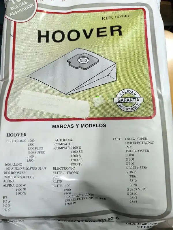 BOLSA ASPIRADOR HOOVER, CAJA 10 BOLSAS PAPEL, CARTON 120/108MM, DIAMETRO 59MM, 749