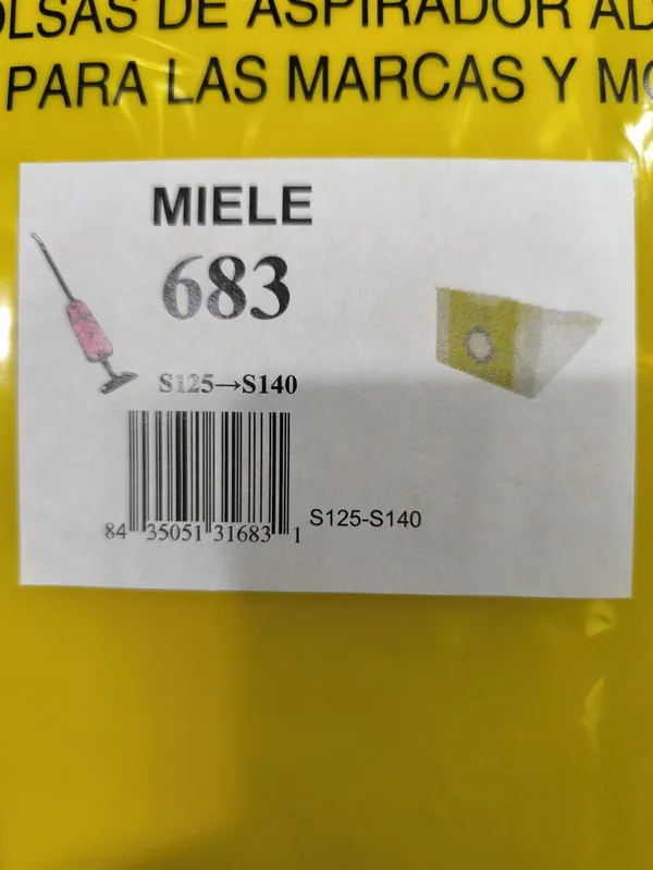 BOLSA ASPIRADOR MIELE, PAQUETE 5 BOLSAS PAPEL, CARTON 96MM, DIAMETRO 44MM, RECANBIO ALTERNATIVO, 683