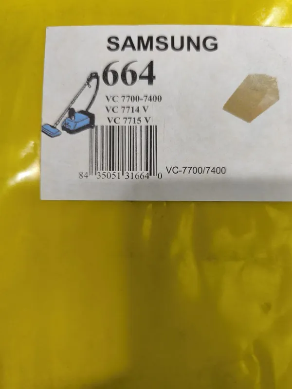 BOLSA ASPIRADOR SAMSUNG, CAJA 5 BOLSAS, RECAMBIO ALTERNATIVO, CARTON 98MM, DIAMETRO 45MM, VC7700