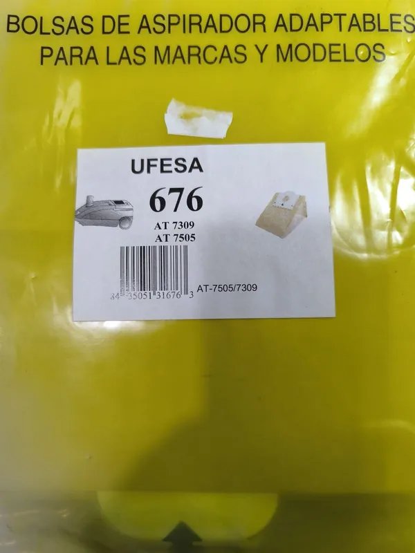 BOLSA ASPIRADOR UFESA, ALTERNATIVA, CAJA 5 BOLSAS PAPEL, CARTON 130MM, DIAMETRO 40MM, 676