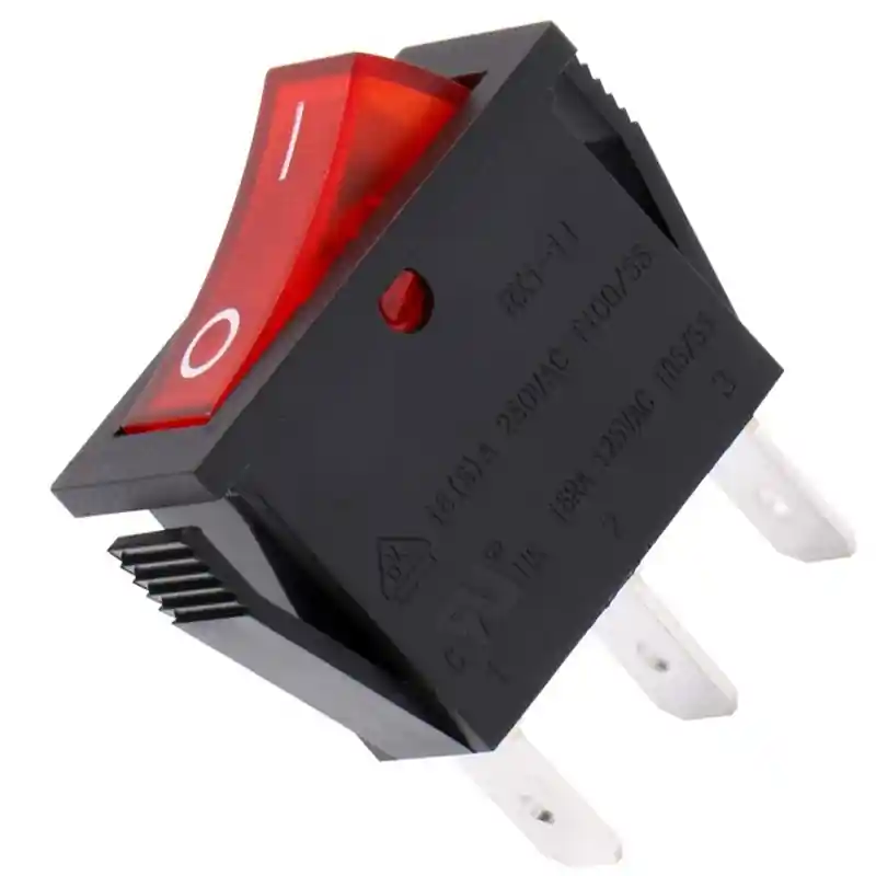 Interruptor bipolar rojo, con luz piloto. Voltaje: 16(4)A 250V. máx. temperatura 120°C Plantilla de perforación 11×30 mm Modelos comparibles: COOKMAX, ROLLER GRILL. C.O. A0712