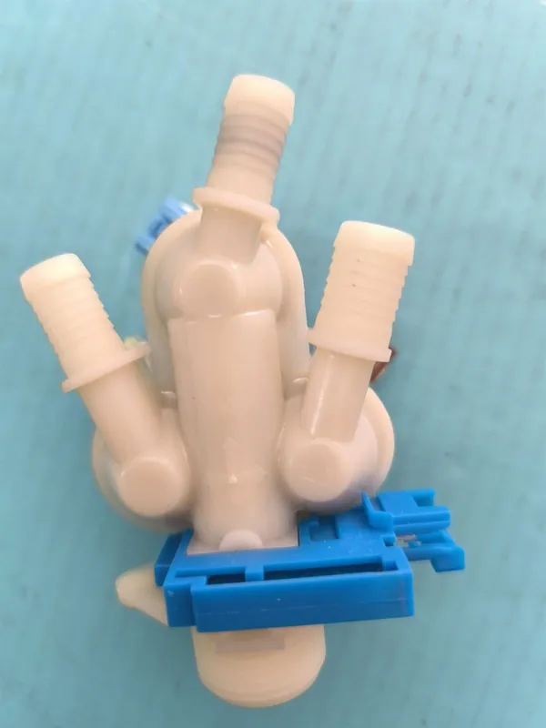 ELECTROVALVULA LAVADORA, 3 VIAS AEG, ZANUSSI, CON CAUDALIMETRO, SALIDA 12/14 MM, ENTRADA 3/4, ENTRADA/SALIDA 180 º