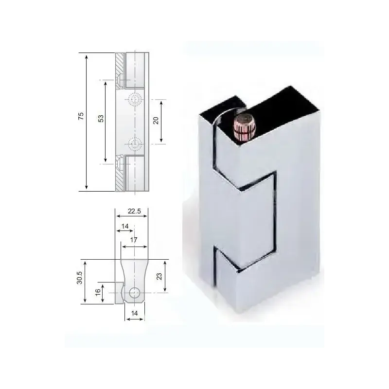 Bisagra fabricada en aleación de Zamak 5.