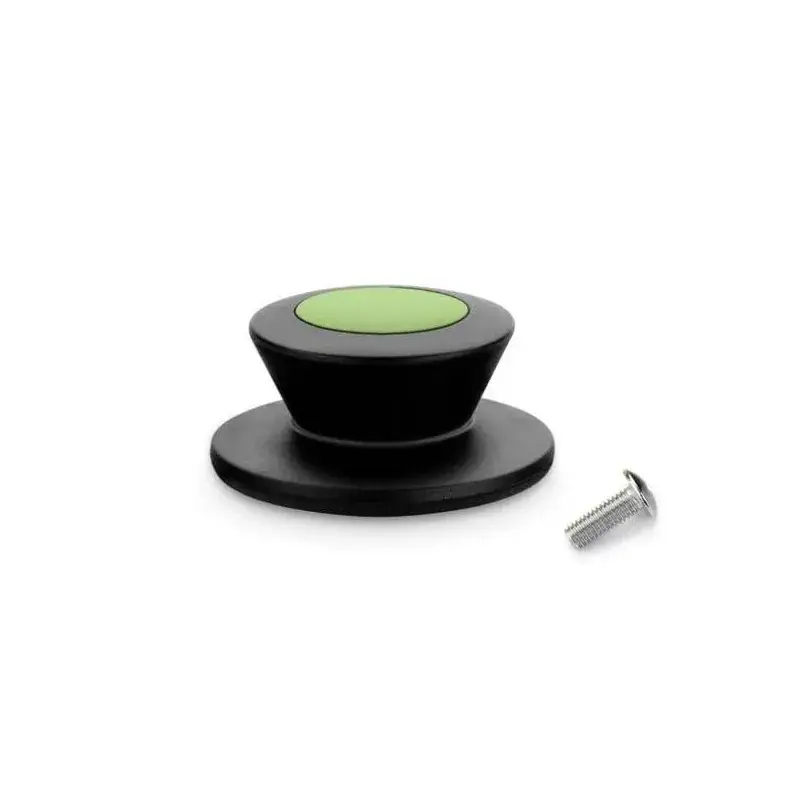 -Pomo de baquelita con embellecedor de silicona verde, ergonómico para un tacto agradable y seguro.