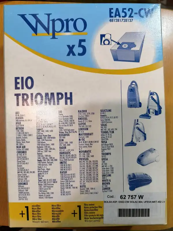 BOLSA ASPIRADOR SELETCLINE, CAJA 5 BOLSAS+1FILTRO, VER FOTO MARCAS Y MODELOS, EA52-CW
