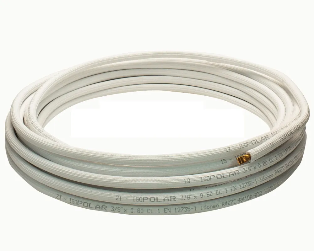 Tubo de cobre aislado unipolar de 3/8”, con espesor de pared 0,80 mm, en rollo de 25 metros. Especialmente diseñado para instalaciones de aire acondicionado y climatización, ofrece gran resistencia, durabilidad y un aislamiento de alta calidad que garantiza seguridad y eficiencia en la conducción del gas refrigerante.
