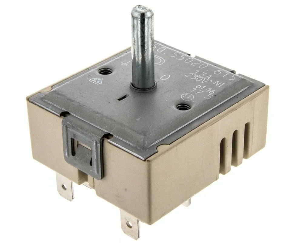 El Regulador de Encimera Vitrocerámica 50550200615 es un regulador de energía doble de 7 posiciones diseñado para controlar la potencia de las resistencias en placas y encimeras vitrocerámicas.