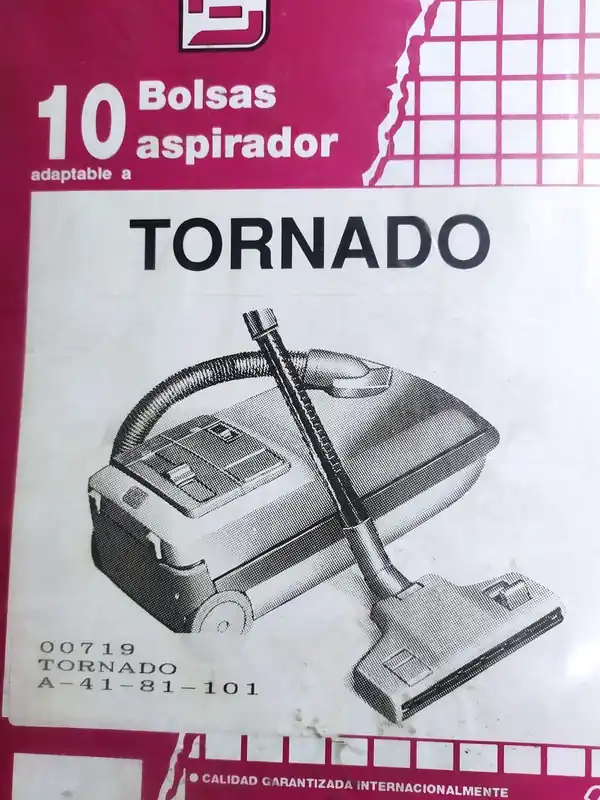 BOLSA ASPIRADOR TORNADO MODELO, PAQUETE 10 BOLSAS PAPEL, DIAMETRO 44 MM, ANCHO CARTON 80 MM,